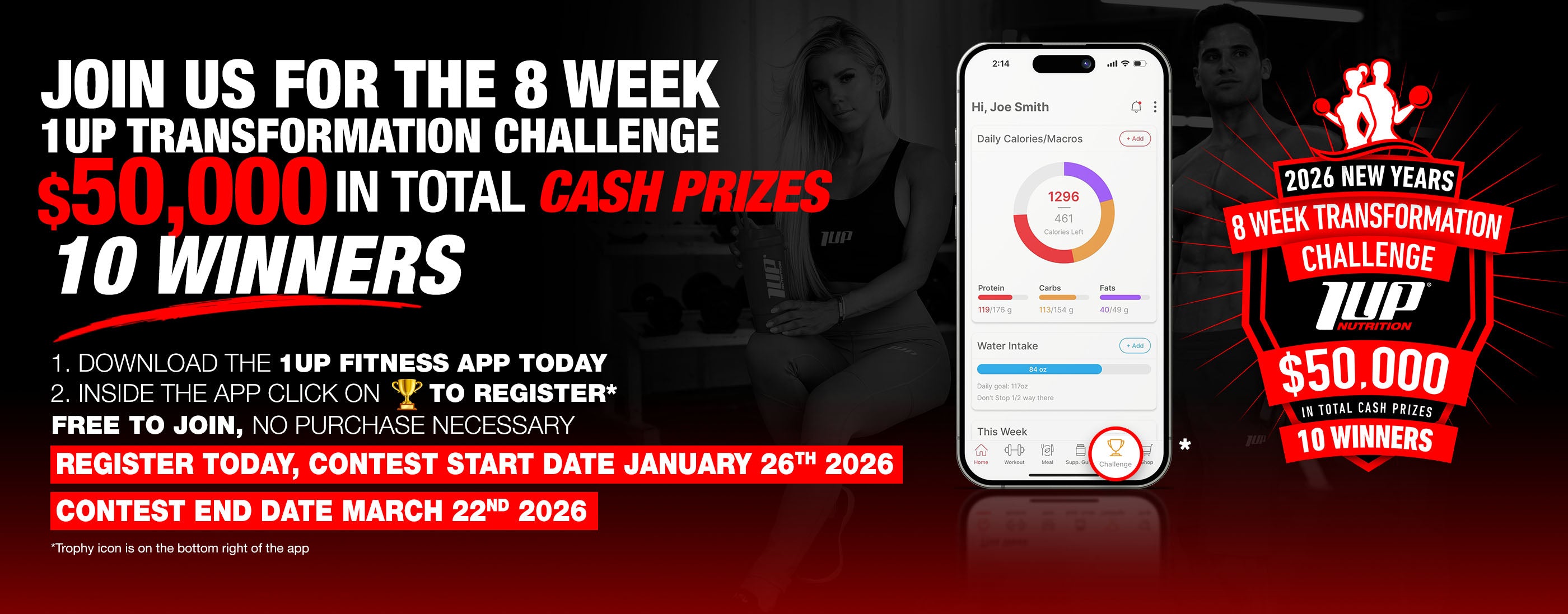 FREE access to private Facebook group for updates, ultimate motivation and support from team 1UP and other participants